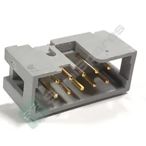 Description: CONNECTOR HEADER THROUGH HOLE RIGHT ANGLE 10 POSITION 2.54MM MALE PIN SHROUDED 4 WALL SOLDER PUSH PULL GRAY
