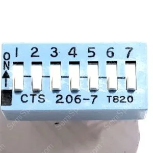 CTS ELECTROCOMPONENTS | 206-7 | 206-7 | DIP SWITCH SPST 7 POSITION THROUGH HOLE SLIDE ACTUATOR 50MA 24VDC RAISED PC PIN BLUE