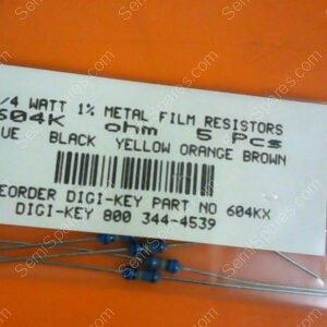 UNBRANDED | 604KX | 604KX | 1/4 WATTS 1% METAL FILM RESISTORS 604KX OHM (PACKAGE OF 5)