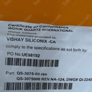 Manufacturer: WONIK QUARTZ INTERNATIONAL